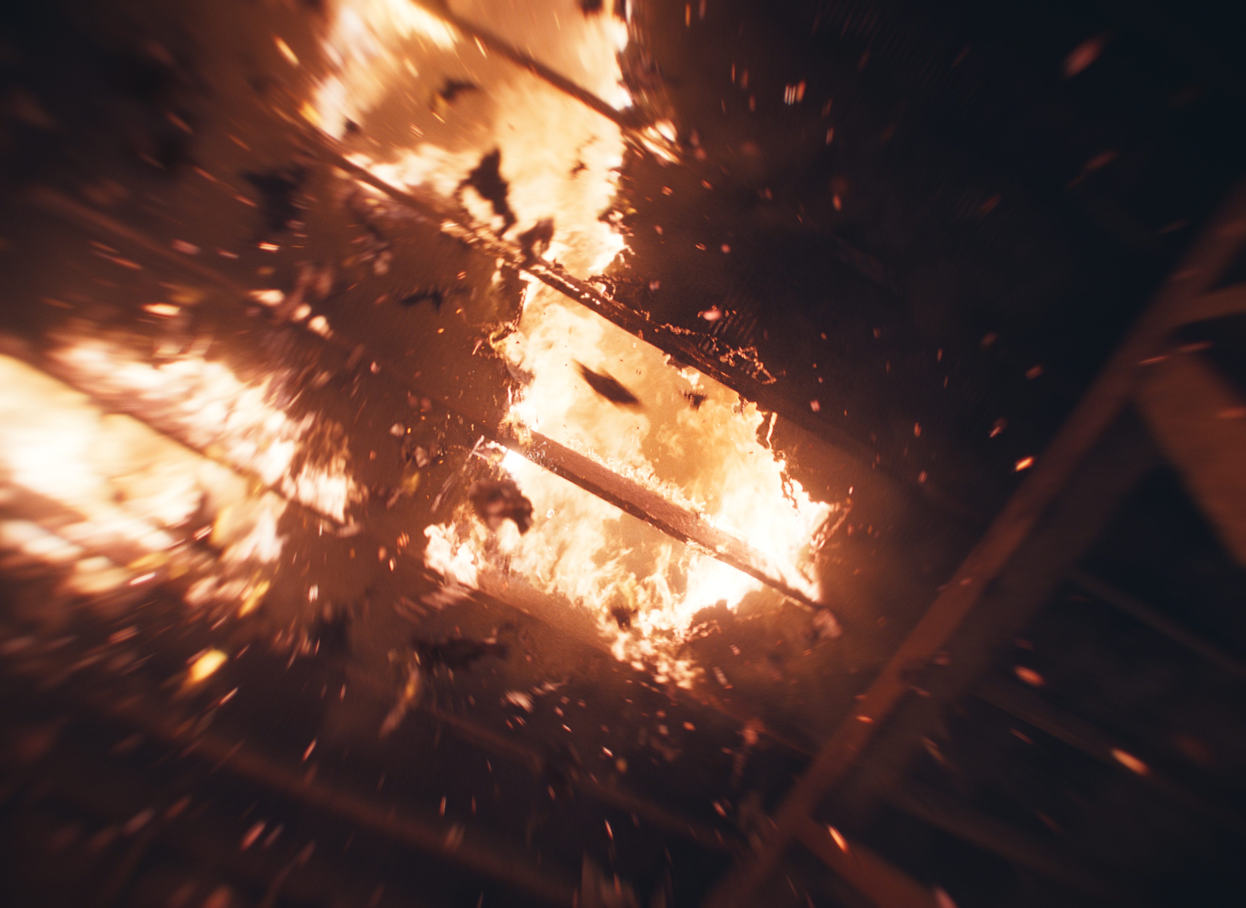 (The burning roof was fully CG. Photo sequence courtesy of Michael Ralla.)